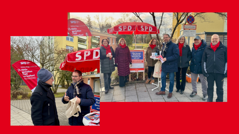 Erster Infostand des SPD Ortsvereins zur Kommunalwahl mit Andreas Magg und Mitgliedern des Gemeindrats …